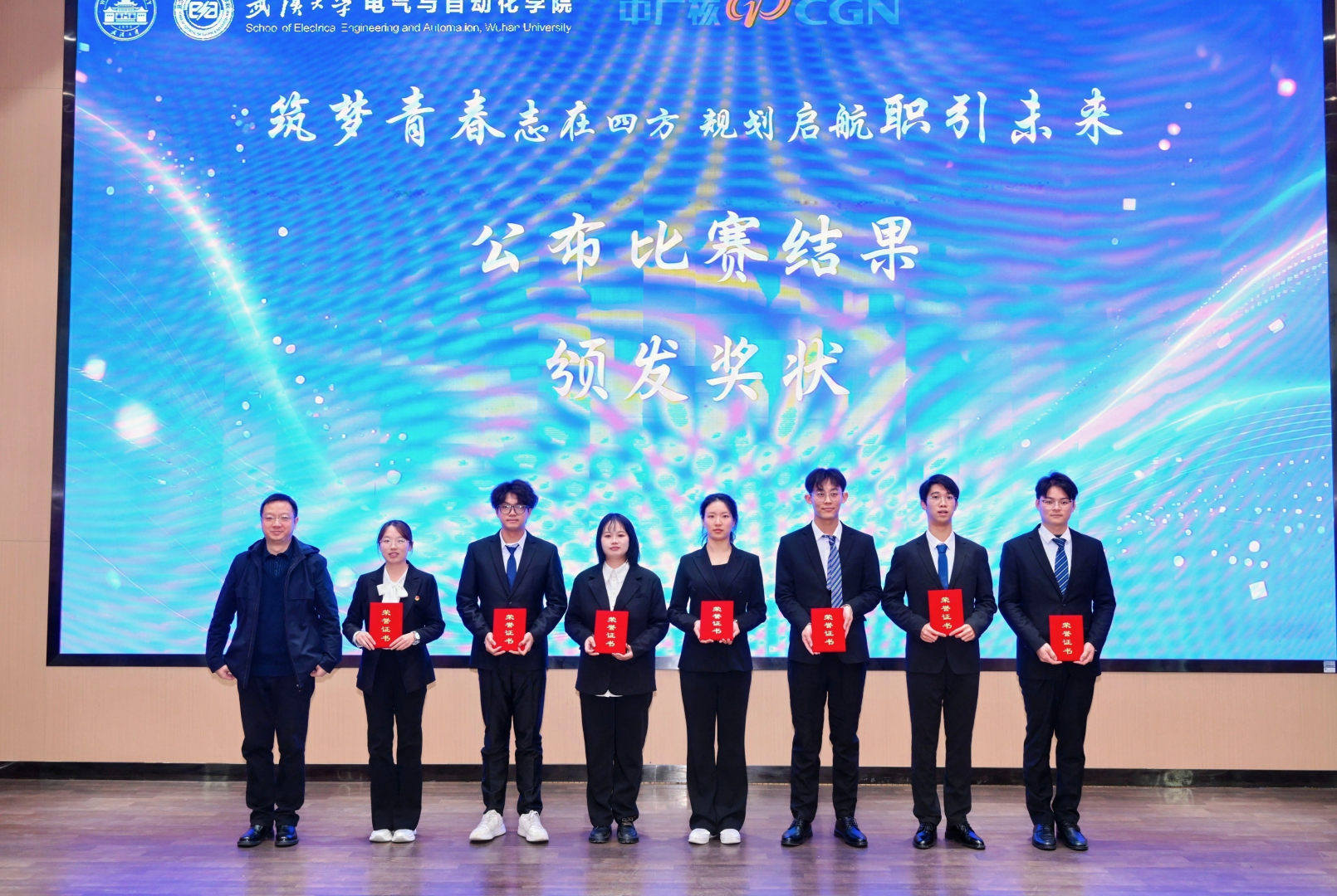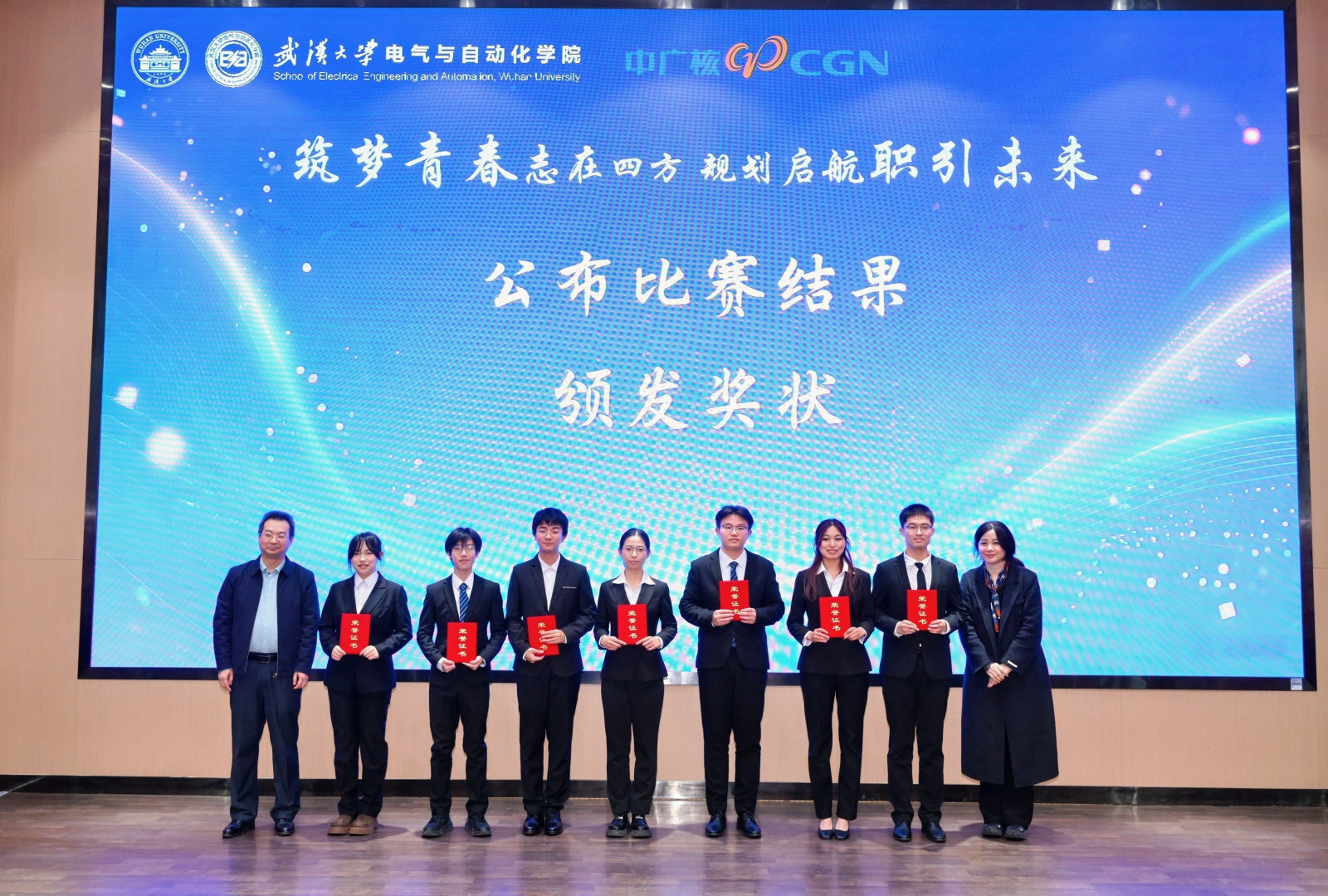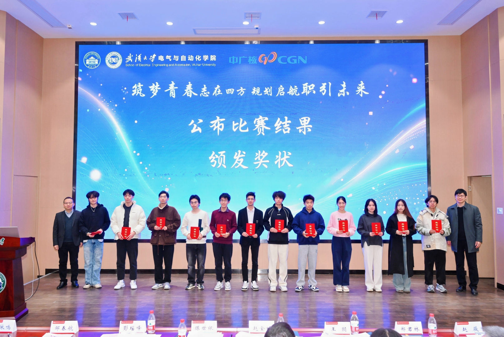 党委副书记陈世银出席活动,武汉中元华电科技股份有限公司总工程师郑君林、中广核工程有限公司咸宁核电人力资源主管彭瑶峰受邀担任评委,与现场师生共同见证这场职业规划的青春盛宴。