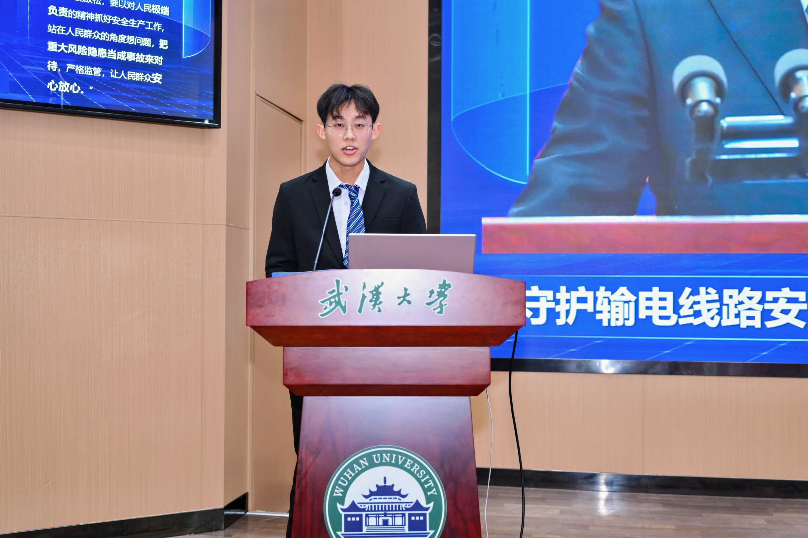 赵金利作总结讲话。他指出,电气学院在职业规划教育方面成果斐然,去年作为全校唯一本研均获最佳组织单位的学院,荣获湖北省金奖1项、校级金奖2项,学生参与率大幅领先。这得益于学院从日常课程行业认知引导,到赛前导师悉心指导,再到搭建企业实践平台的全链条育人模式,此次大赛的高水准便是学院育人实力的有力彰显。他强调,职业规划大赛的落幕是从“被动接受培养”迈向“主动谋划人生”的关键起点。他希望电气学子始终保持对专业的敬畏心与求知欲,坚守专业初心、秉持开放视野、永葆责任担当,把个人理想融入国家发展大局,在服务国家战略中成就更有高度的人生。